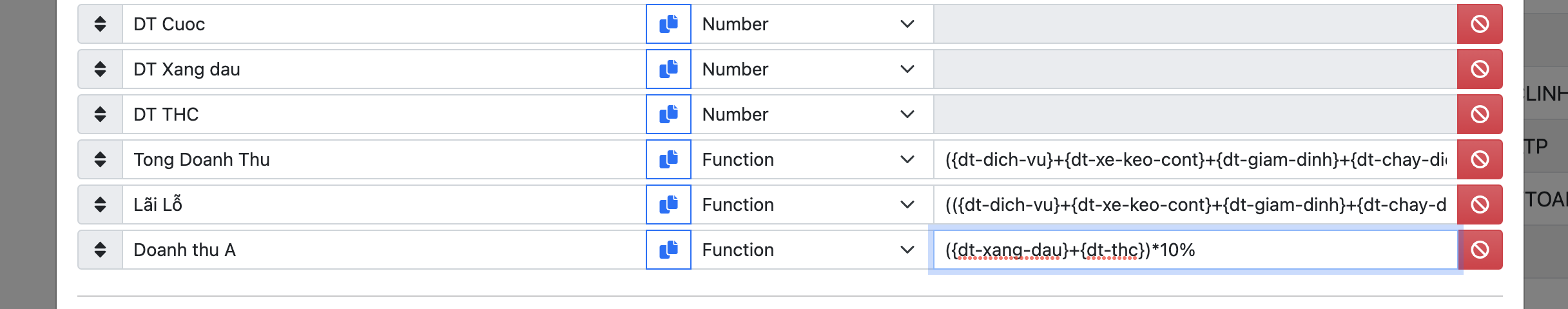 - Để cài đặt dữ liệu cột là hàm tính toán, chọn loại dữ liệu cho cột là