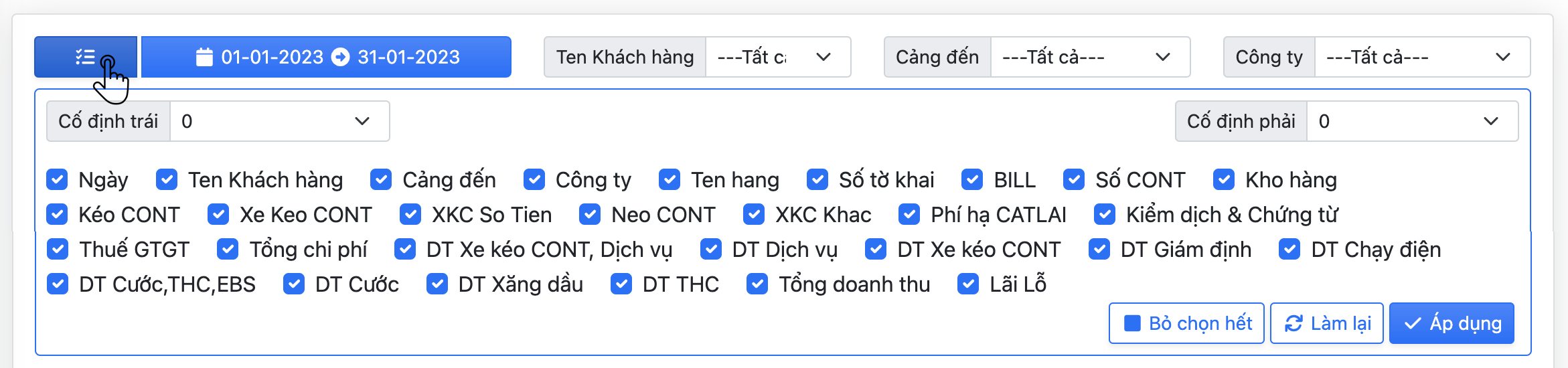 - Lọc các cột muốn xuất dữ liệu (chọn icon [