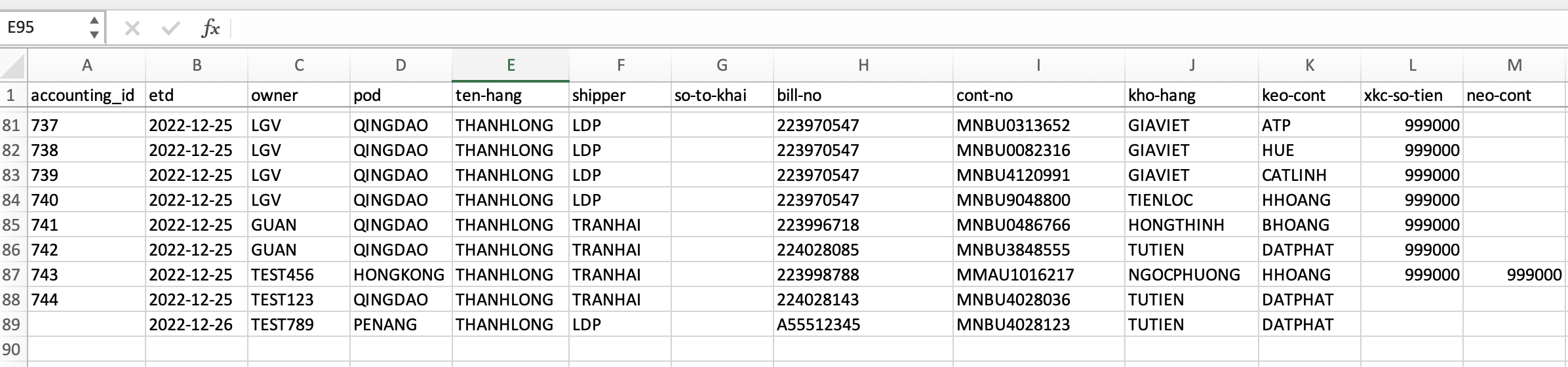 - Loaded file: có thể thêm mới dòng, nhưng phải để trống cột đầu tiên (accounting_id)