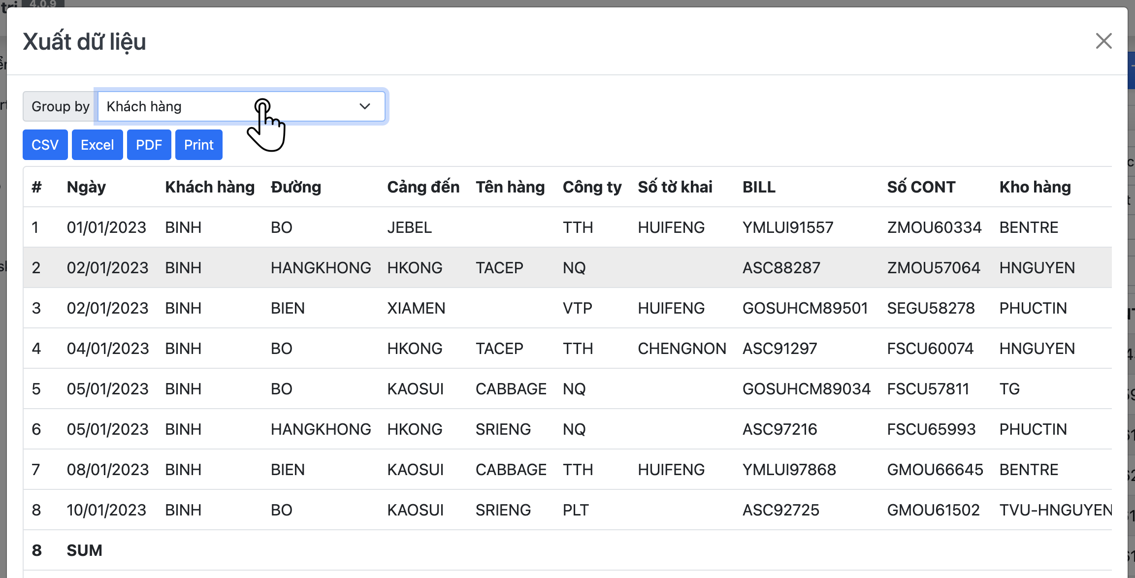 - Người dùng có thể tổng hợp báo cáo theo nhóm với các cột được định dạng