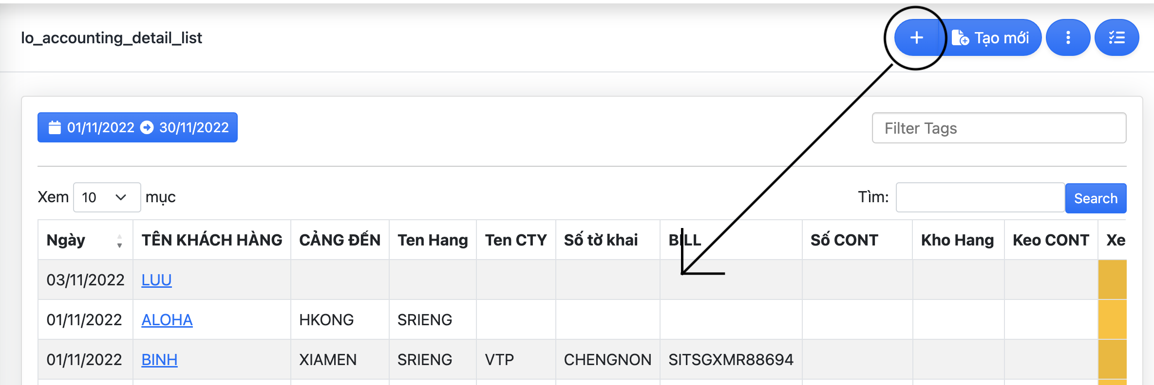 - Để cập nhật ghi chú, tags -> Cuộn xuống phía dưới của các cột dữ liệu