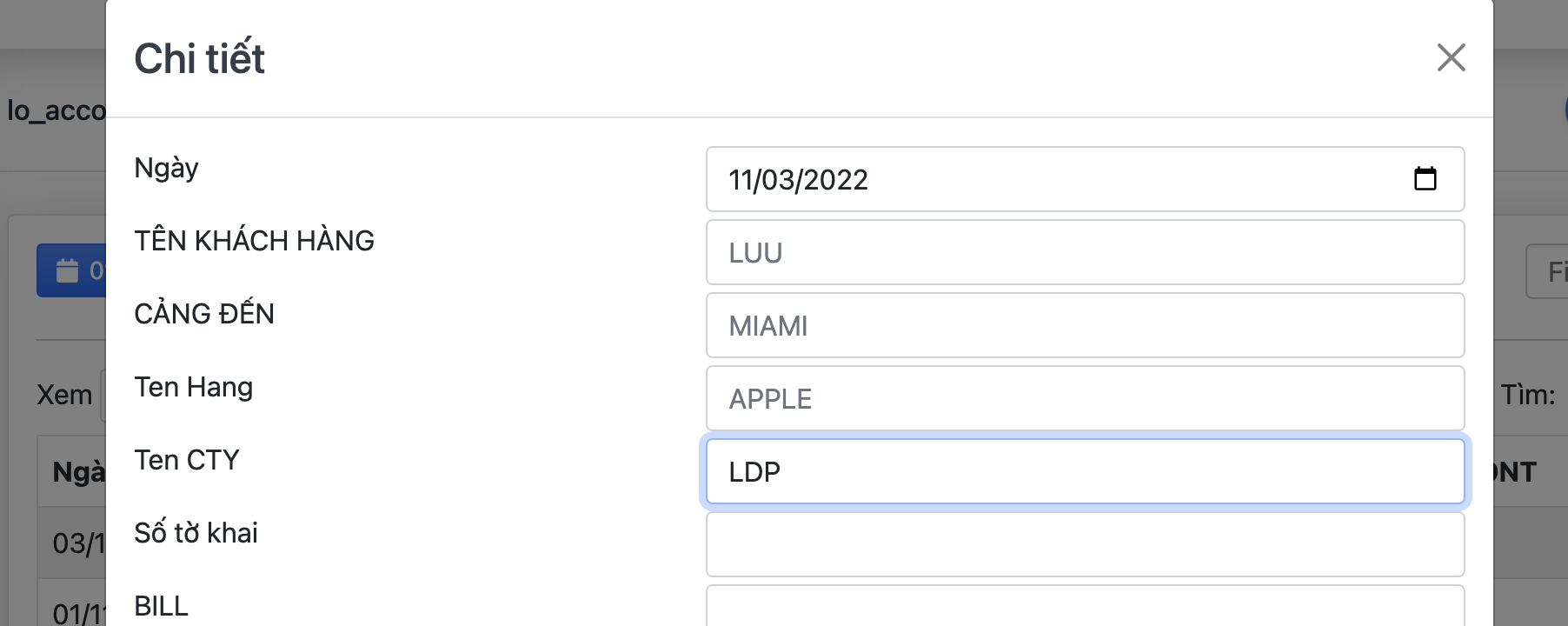 - Một popup sẽ hiện ra chi tiết của dữ liệu.