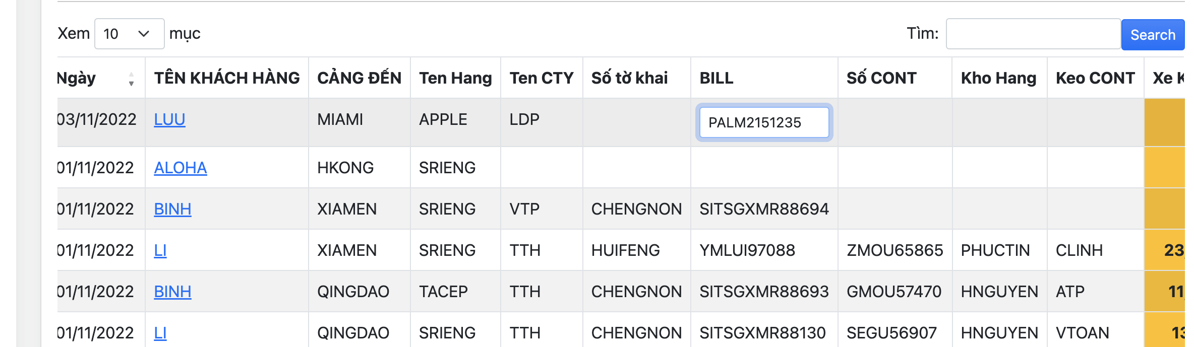 Người dùng có thể sửa nhanh dữ liệu từ giao diện bảng