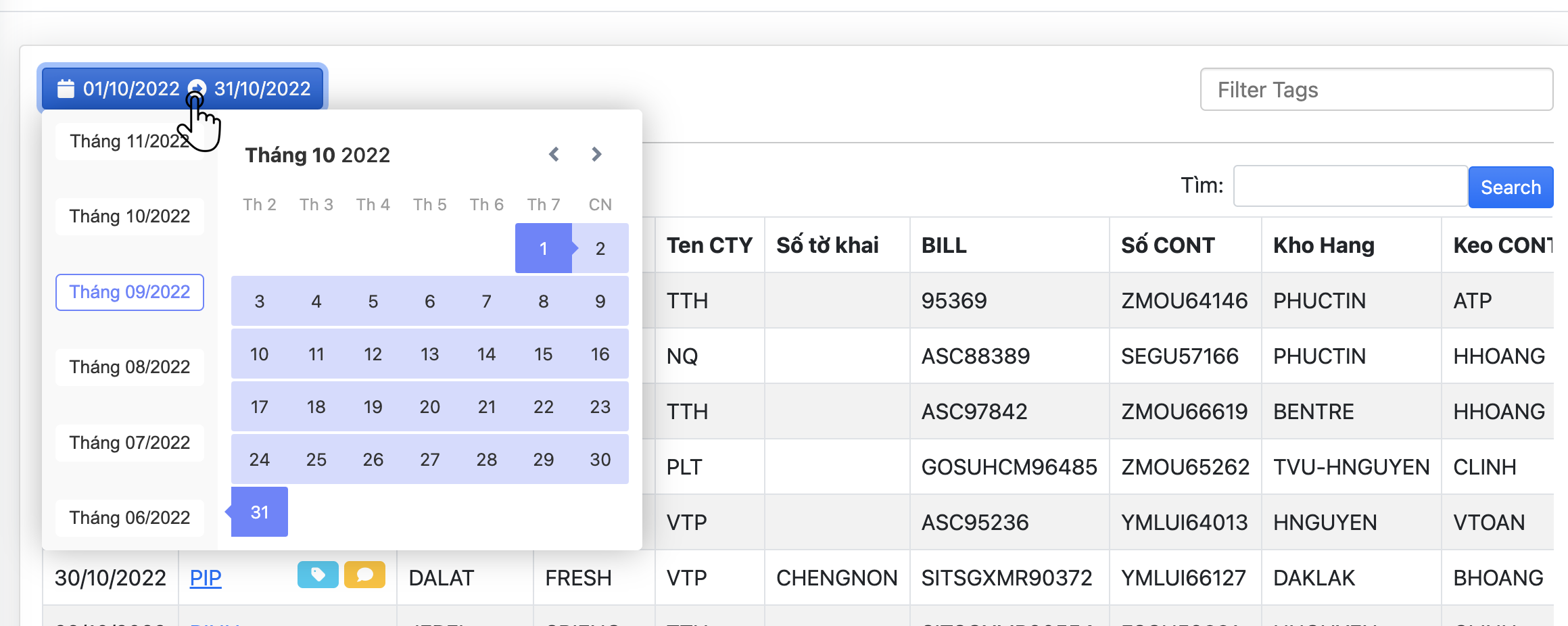 - Từ giao diện bảng, ở góc trên bên trái, chọn nút lọc thời gian