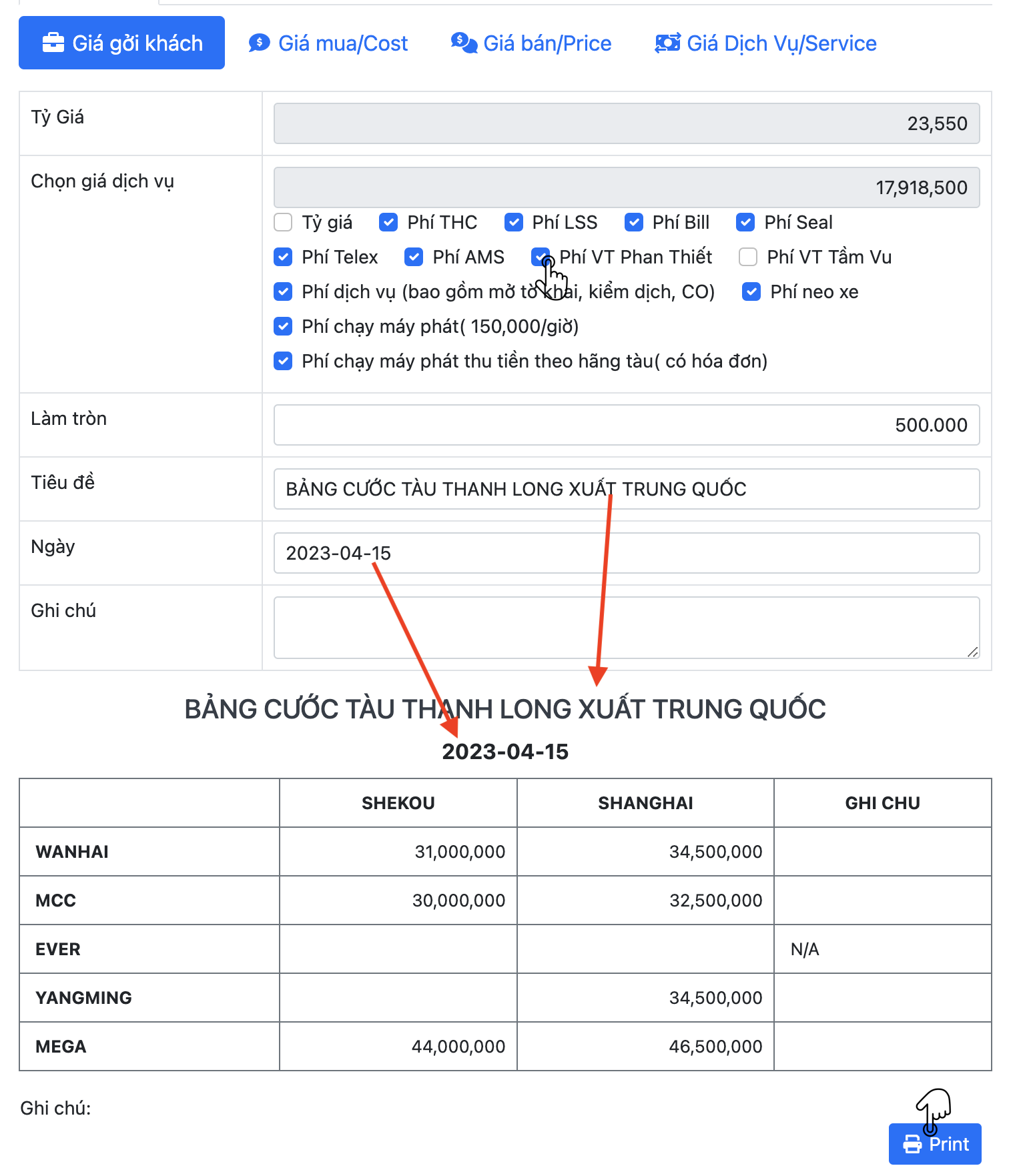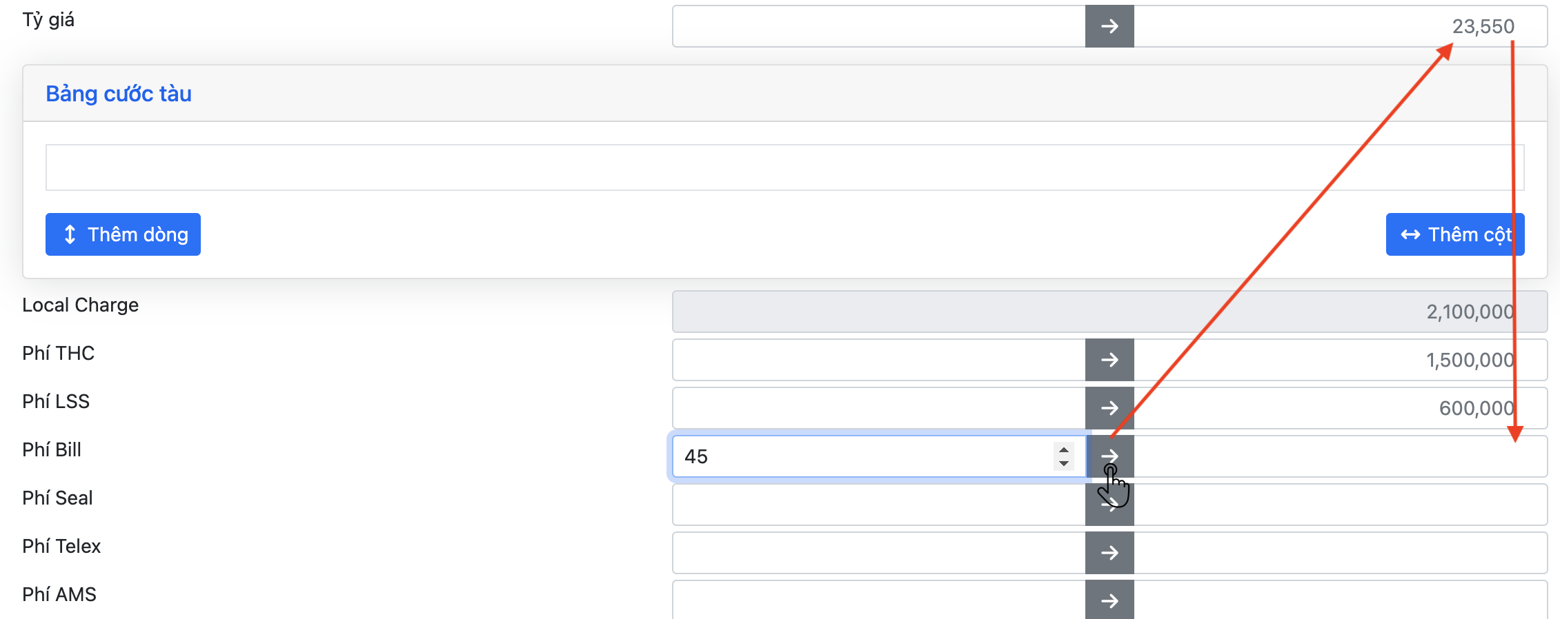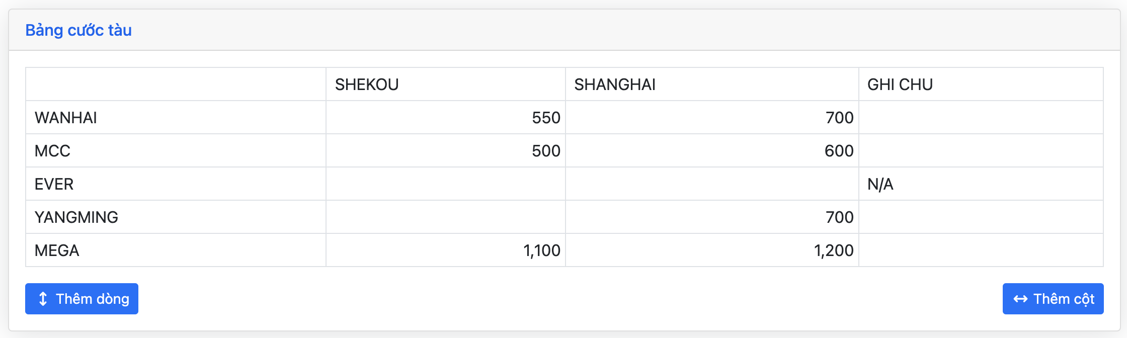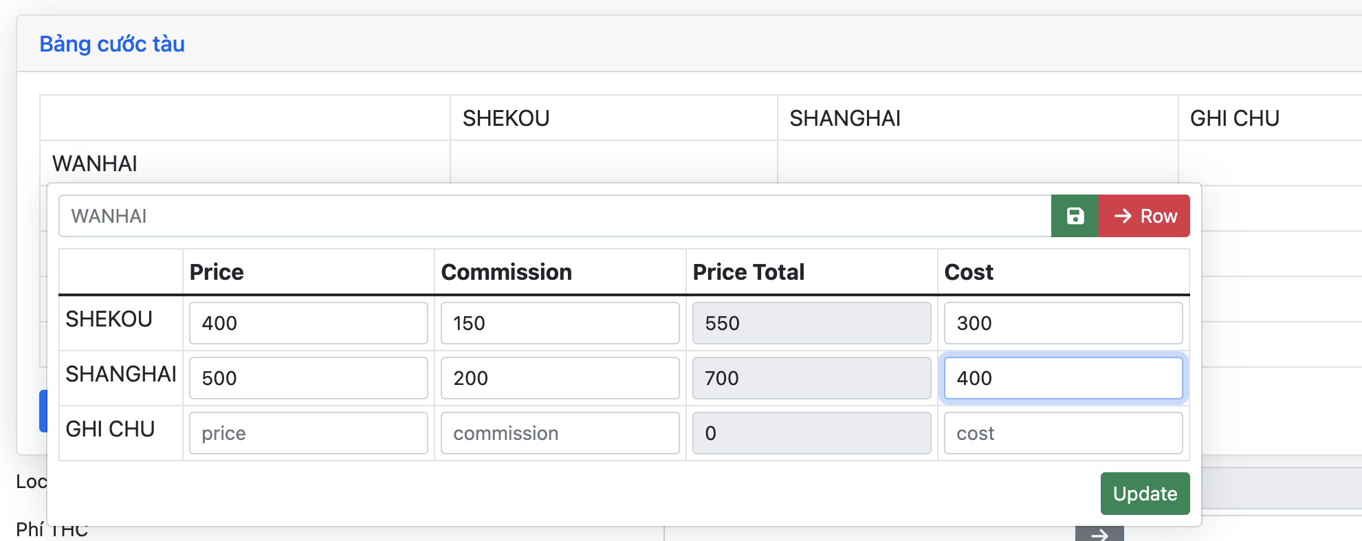 - Bảng cước tàu sẽ thể hiện Giá Tổng (Price Total)